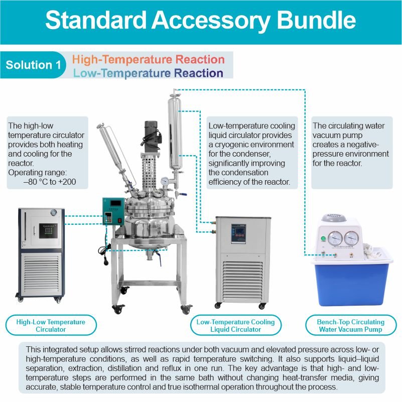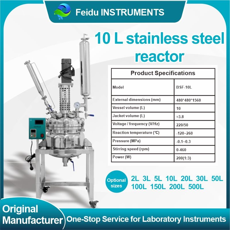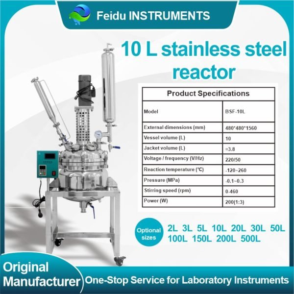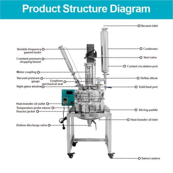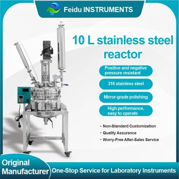 The double-layered stainless steel reactor features a double-walled stainless steel design. The inner layer holds the reaction solvent for stirring reactions, while the outer jacket can be connected to different heating or cooling sources (refrigerant, hot water, or hot oil) for circulating heating or cooling. Under controlled temperature conditions, stirring reactions can be carried out in the sealed stainless steel reactor under normal or reduced pressure, and reflux and distillation of the reaction solution are also possible. It is an ideal pilot-scale and production equipment for modern fine chemical plants, biopharmaceutical companies, and new material synthesis.
