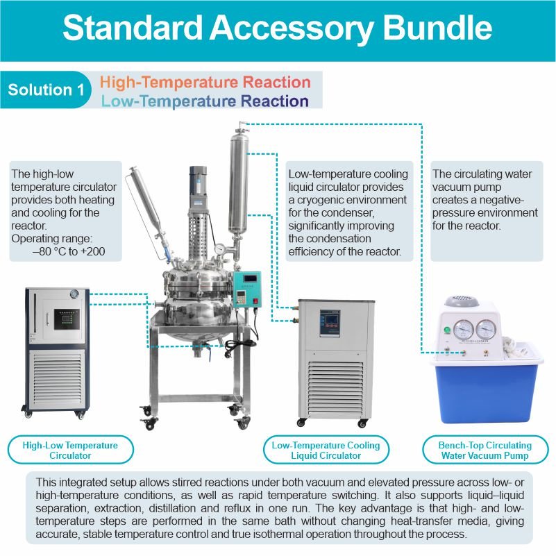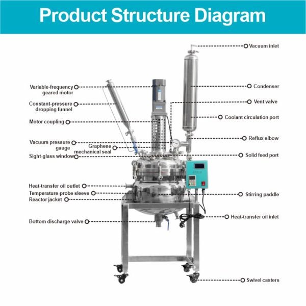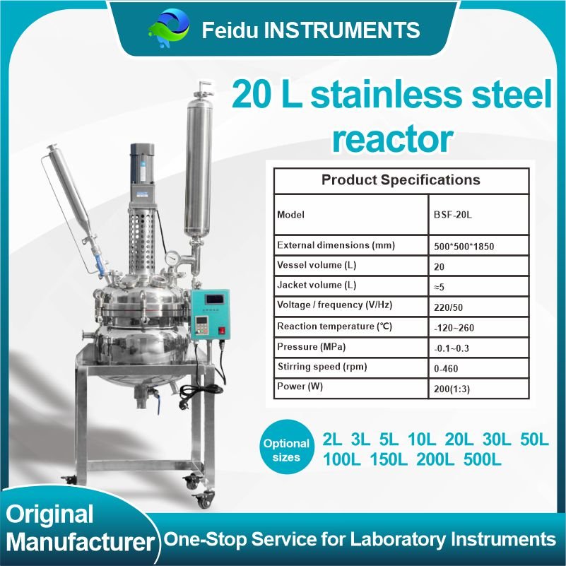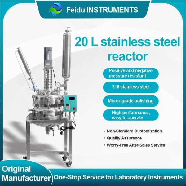The double-layered stainless steel reactor features a double-walled stainless steel design. The inner layer holds the reaction solvent for stirring reactions, while the outer jacket can be connected to different heating or cooling sources (refrigerant, hot water, or hot oil) for circulating heating or cooling. Under controlled temperature conditions, stirring reactions can be carried out in the sealed stainless steel reactor under normal or reduced pressure, and reflux and distillation of the reaction solution are also possible. It is an ideal pilot-scale and production equipment for modern fine chemical plants, biopharmaceutical companies, and new material synthesis.